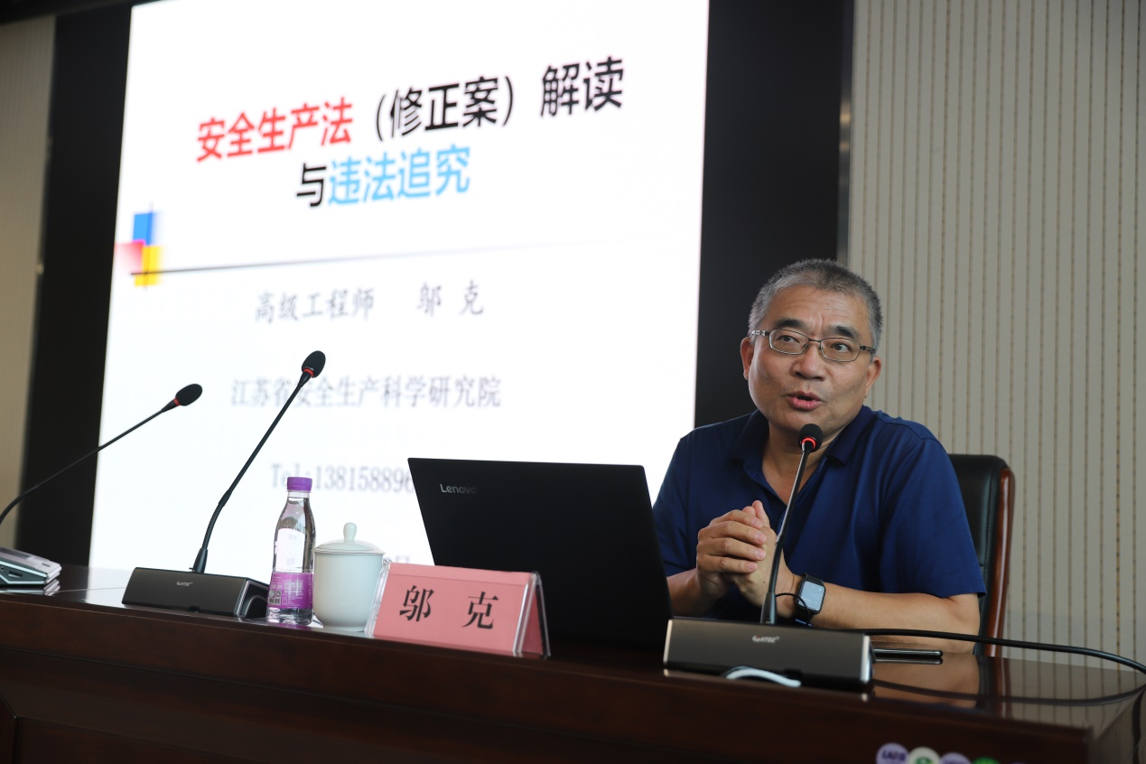 本次培訓(xùn)活動(dòng)邀請了江蘇省安全生產(chǎn)科學(xué)研究院副所長、高級工程師鄔克,以《安全生產(chǎn)法(修正案)解讀與違法追究》為課題進(jìn)行授課。鄔老師首先詳細(xì)解讀新《安全生產(chǎn)法》背景下企業(yè)全員安全生產(chǎn)主體責(zé)任,其次重點(diǎn)分析安全生產(chǎn)法律責(zé)任追究,講課內(nèi)涵豐富、分析透徹,既有對多年安全生產(chǎn)工作的經(jīng)驗(yàn)總結(jié),又有深入基層調(diào)研后的理性思考。
