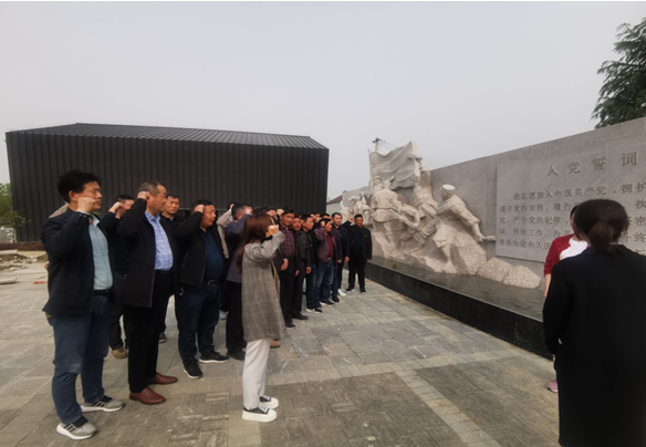 在西舍紅色教育基地,首先通過歷史圖片、實物,以及場景重現(xiàn)等展示手段,向黨員同志們展示了在抗日戰(zhàn)爭時期軍民同心艱苦奮斗的抗戰(zhàn)歷程。其次在莊嚴(yán)的烈士紀(jì)念碑前,面對鮮紅的黨旗,青年黨員代表宋慧珠同志帶領(lǐng)大家重溫入黨誓詞,全體黨員干部舉起右手、緊握拳頭,鄭重宣誓。