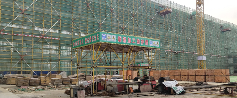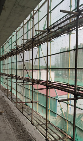 精細(xì)化管理下的施工現(xiàn)場井井有條,工人們的安全意識非常強,施工時不忘做好安全防護(hù),在腳手架、樓梯、通道口設(shè)置防護(hù)架或防護(hù)棚。