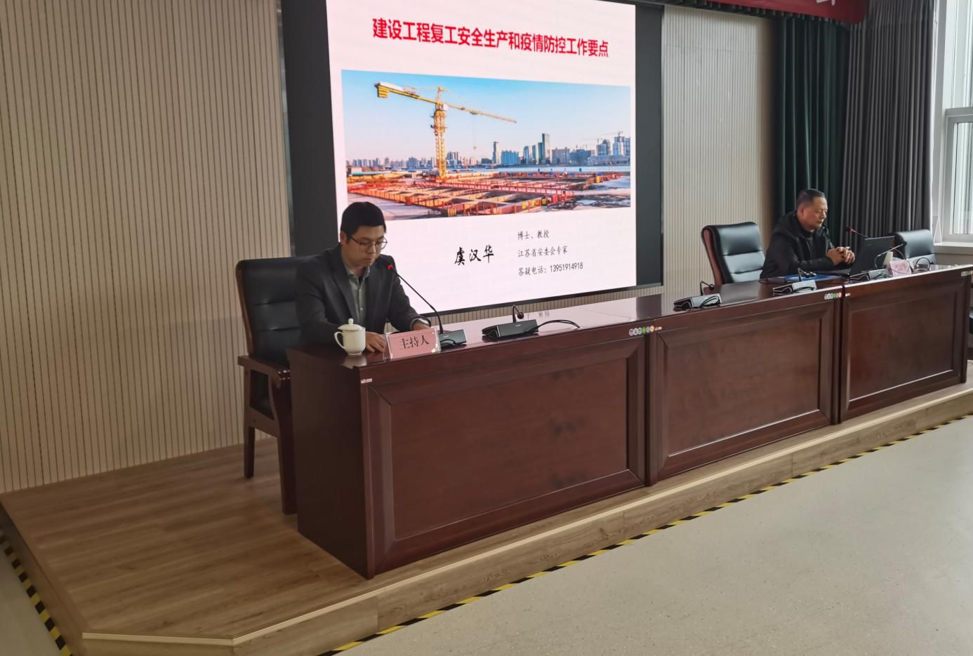 會上,國家注冊安全工程師、國家注冊安全評價(jià)師、江蘇省安全生產(chǎn)委員會專家虞漢華為大家講解《建設(shè)工程復(fù)工安全生產(chǎn)和疫情防控工作要點(diǎn)》。虞處長圍繞高度重視復(fù)工期間安全生產(chǎn)和疫情防控工作、嚴(yán)格把好復(fù)工安全生產(chǎn)條件關(guān)、全力做好建筑工地疫情防控三個(gè)要點(diǎn)進(jìn)行深入剖析,指出了當(dāng)前安全生產(chǎn)和疫情防控工作的緊迫性和重要性,在復(fù)工復(fù)產(chǎn)檢查和疫情常態(tài)化防控方面對各參建方提出了明確的任務(wù)和要求,為大家一手防疫情、一手穩(wěn)建設(shè)上好了“第一課”,把牢了“第一關(guān)”。