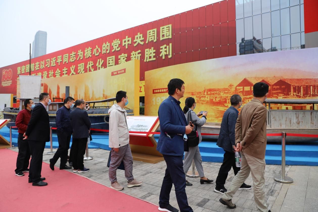 在講解員的引導下,全體黨員干部觀看了一幅幅珍貴照片、一件件文物實物,通過場景再現(xiàn),沉浸式體驗了一堂入眼入耳、入腦入心的實景黨課,深切了解了中國共產(chǎn)黨在江蘇的百年奮斗歷程。