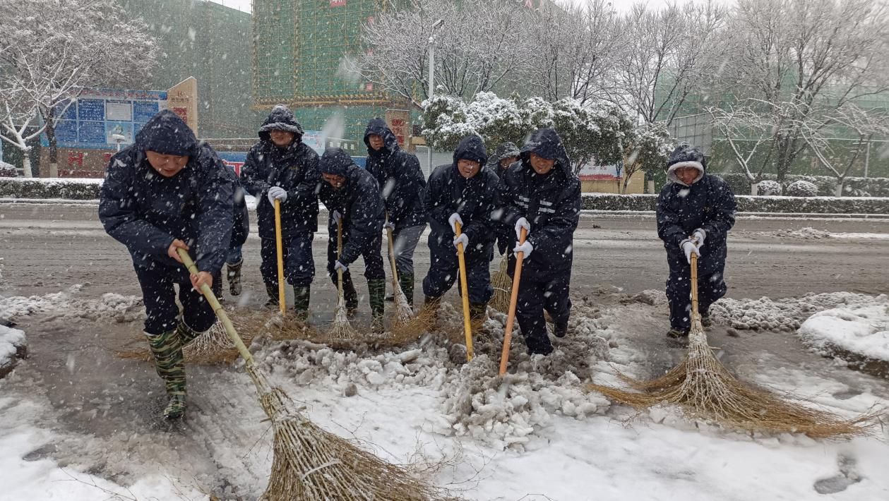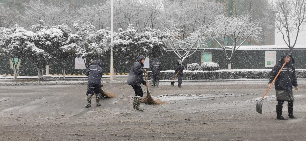 雪水浸濕了鞋,眼鏡片蒙上薄霧,也絲毫沒有影響大家高漲的掃雪熱情。在寒冷的環(huán)境中,集團員工們穿上雨衣雨靴帶頭沖鋒,不畏嚴寒,扛著鐵鏟、掃帚等工具,或鏟或推,團結協(xié)作,有序的清理道路積雪。